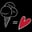 Drei Kugeln Eiscreme in Waffel: rot, gelb, weiß, mit Minzblatt.
